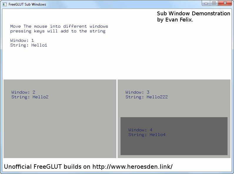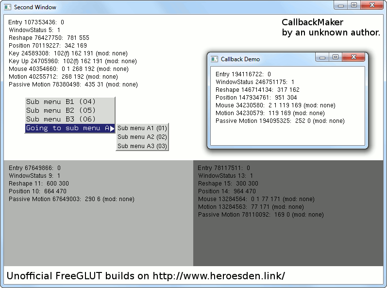 There are screenshots of some demonstation applications included in FreeGLUT: